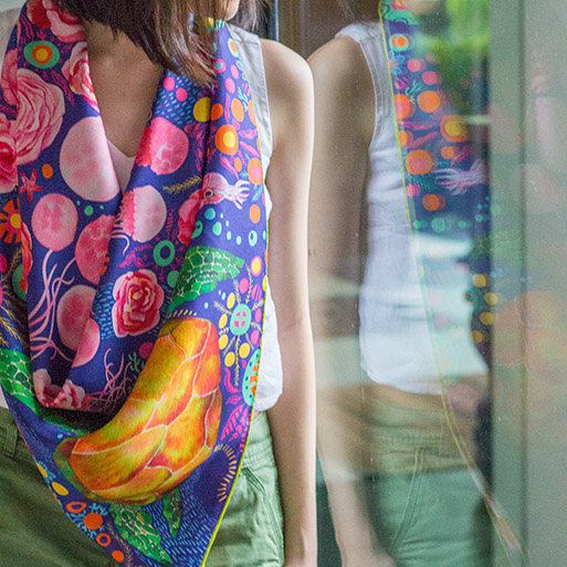 Our flagship product is premium quality scarves made of 100% authentic silk. Lovingly designed in-house, our collection of scarves makes for a unique fashion accessory that adds flair to your everyday #ootd. We have since expanded our product line to include pocket squares for men and reusable face masks to keep everyone stylishly safe.