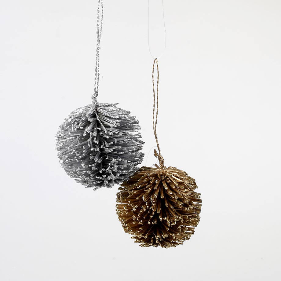 This set of two different Christmas balls are handcrafted using natural materials. They are unique tropical ornaments to hang on your Christmas tree.