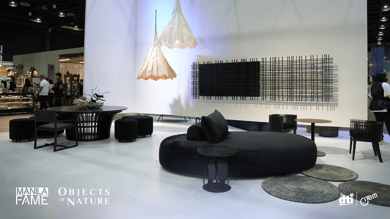 The trend plays into the intrinsic strengths of Filipino design and craftsmanship, as demonstrated by Manila FAME’s signature settings. Design Commune presents two exhibits that have distinct takes on nature as a design inspiration. The first is “Elements of Nature,” with Tony Gonzales as the creative director and young designers Uzel Alconera, Jaime Brias, and Jim Zarate-Torres as assistant curators. It features home and seasonal decor made by 20 exhibitors that reinterpret forms, textures, and patterns found in natural elements. Meanwhile, “Home at FAME” was conceptualized under the creative direction and curation of Milo Naval, and it presents all-black furniture and lighting items set against a white backdrop. The dramatic exhibit highlights the 10 participating manufacturers’ masterful material manipulation.